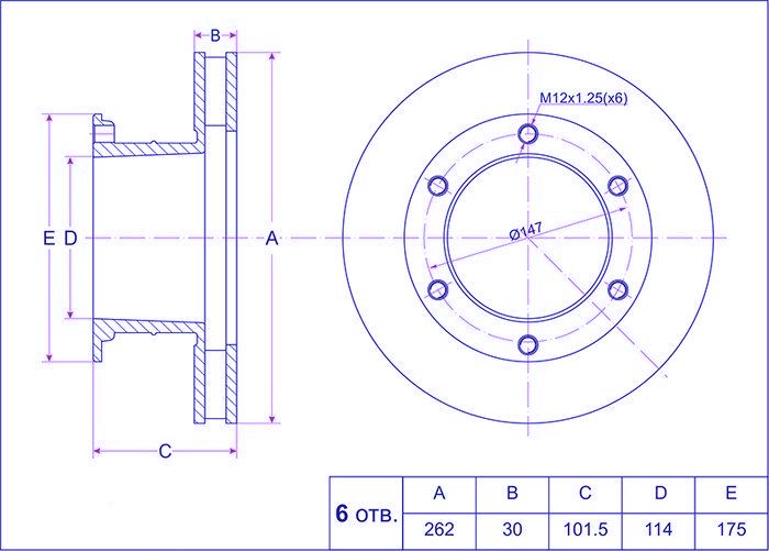 Диск тормозной /передний /TI-GUAR для Toyota TOYOACE DYNA 150/200 1987-1995 /LY6# LY21# BU6# 8# 10#; 262/30мм; TG-43512-25050 PD3119127S 3119127 ADT343216