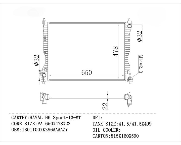 Радиатор охлаждения /TI-GUAR для HAVAL H6 2013-2020; TG-6021016 1301100Xkz08a LRC3008