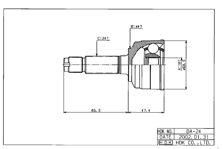 ШРУС наружный / правый /левый HDK для OPTI Move Hijet Cargo; 18*47*24; DA-024; (TG-2824) 4341097503