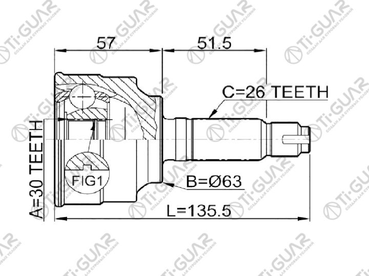 ШРУС наружный /TI-GUAR для Honda Accord CL7 2003-2006, Civic FD2 2006- K20A7 K24A4 /30*63*26; TG-4460; (HO-060) 44305SDET00 44305SDCA00 44014SNG000