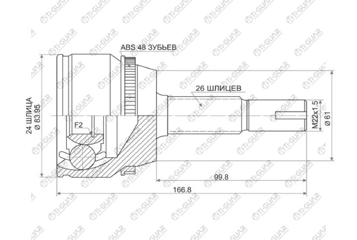 ШРУС наружный /TI-GUAR для Toyota Camry 2001- ACV30 2.4L 2AZFE /ABS / 24*61*26; TG-95104Z48; (TO-081A TO-104A48 ) 4342028030 CO7522A